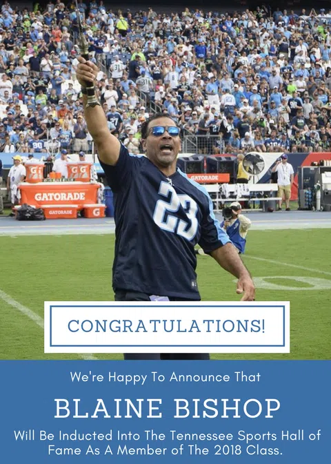 NASHVILLE, TN., Nov. 4, 2017 – Former Tennessee Titans’ safety, Blaine Bishop, was surprised at today’s Tennessee Titans Homecoming Alumni event when the Titan’s announced his induction into the Tennessee Sports Hall of Fame as a member of the 2018 Class. Bishop will be inducted into the Tennessee Sports Hall of Fame at the 52nd Annual Induction Banquet on Saturday, June 16, 2018, at the Omni-Nashville Hotel.
