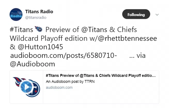 Check out this week’s preview from Titans Radio below and make sure you follow us and Titans Radio on Facebook, Twitter, and Instagram for score updates, news, and more at @1045thezone @titansradio.