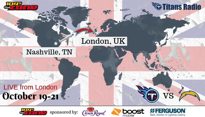 104-5 The Zone & Titans Radio will be bringing you full coverage from London starting Friday ahead of Sunday’s Titans (3-3) vs Chargers (4-2) matchup in Wembley Stadium. Kickoff is set for 2:30pm local time (8:30am CST) Sunday, Oct. 21.