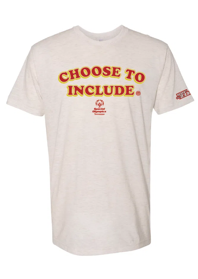 In honor of Special Olympics‘ 50th Anniversary and the five-year Choose To Include Campaign, we will be selling these t-shirts to help raise money for our local friends at Special Olympics Tennessee. Proceeds from each sale will go directly to SOTN.