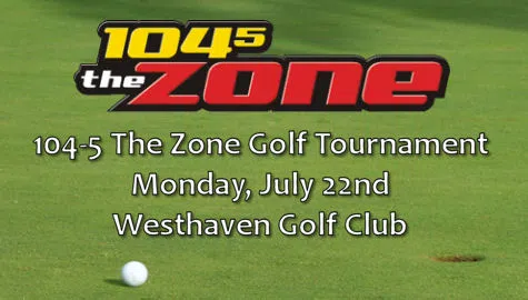 Reserve a spot at the 104-5 The Zone golf tournament today! Want to play in the 104-5 The Zone golf tournament? Send us an email here with you contact information and a 104-5 The Zone representative will be in touch with you regarding your registration.
