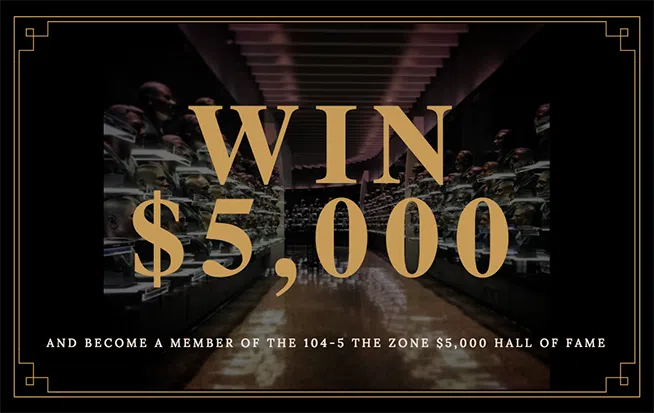 104-5 The Zone wants to say thank you for listening, by putting $5,000 in your pocket! It's 104-5 The Zone's $5,000 Hall of Fame. Sign up by clicking on the link below to enter, then listen wee...