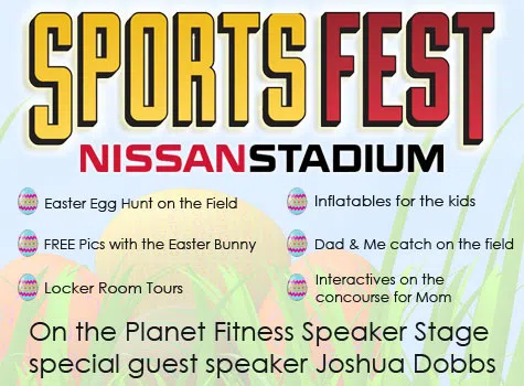 Information What: Sports Fest 2017 When: Saturday, April 15th Where: Nissan Stadium – 1 Titans Way, Nashville, TN 37213 Time: 9:00 am – 2:00 pm Tickets: $7 advance; $10 day of/at gate; chi...