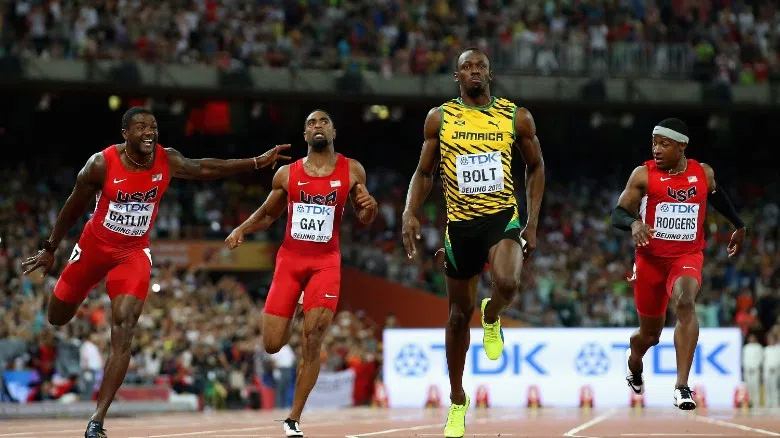 Usain Bolt won the 100m sprint at the 2015 World Athletics Championships in Beijing on Sunday.