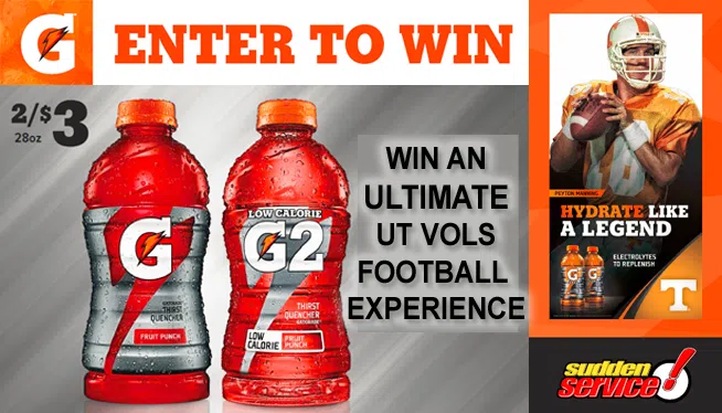 Win an ULTIMATE UT Vols Football Experience from Sudden Service Convenience Stores, Gatorade and 104-5 The Zone! See the Tennessee Volunteers as they kick off their season at Nissan Stadium in Nashvil...
