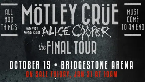 Motley Crue’s “All Bad Things – Must Come To An End” – Farewell Tour Wednesday, October 15th at the Bridgestone Arena After more than three decades together, iconic rock ...