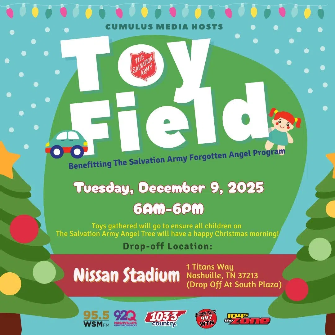 We’re teaming up with The Salvation Army’s Forgotten Angels for Toy Field, happening Tuesday, December 9th at Nissan Stadium. From 6am-6pm, we’re filling the South Plaza with toys, bikes, dolls, games – you name it – all to help families right here in the community.